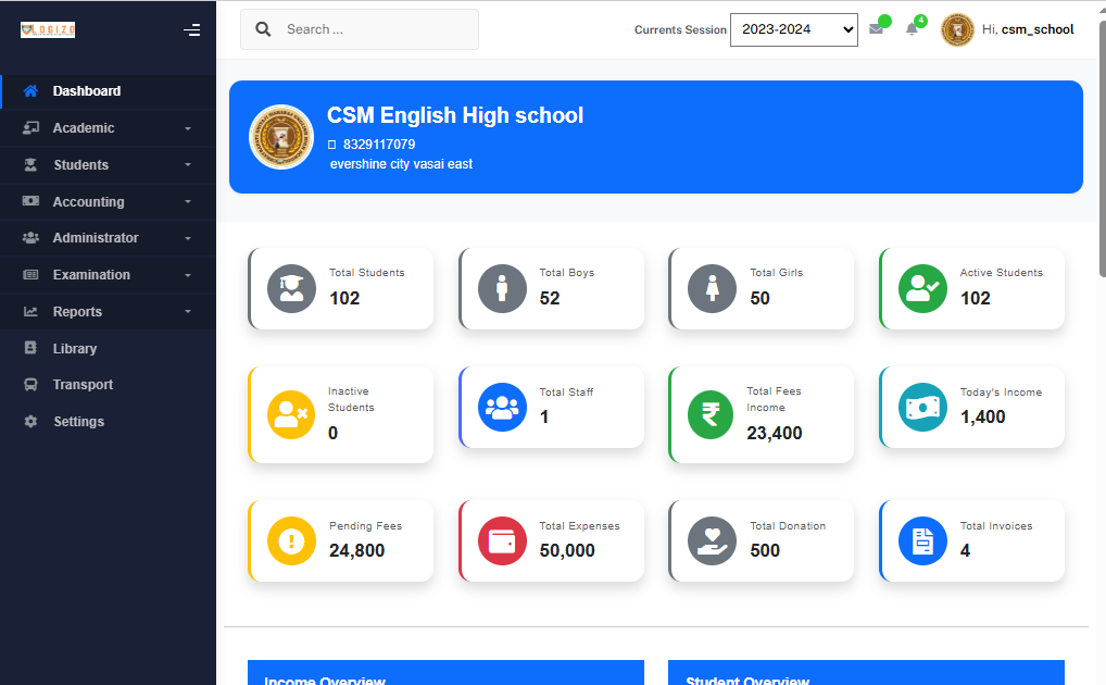 A complete school ERP solution to manage admissions, attendance, exams, fees, and academic reports — all in one secure platform.